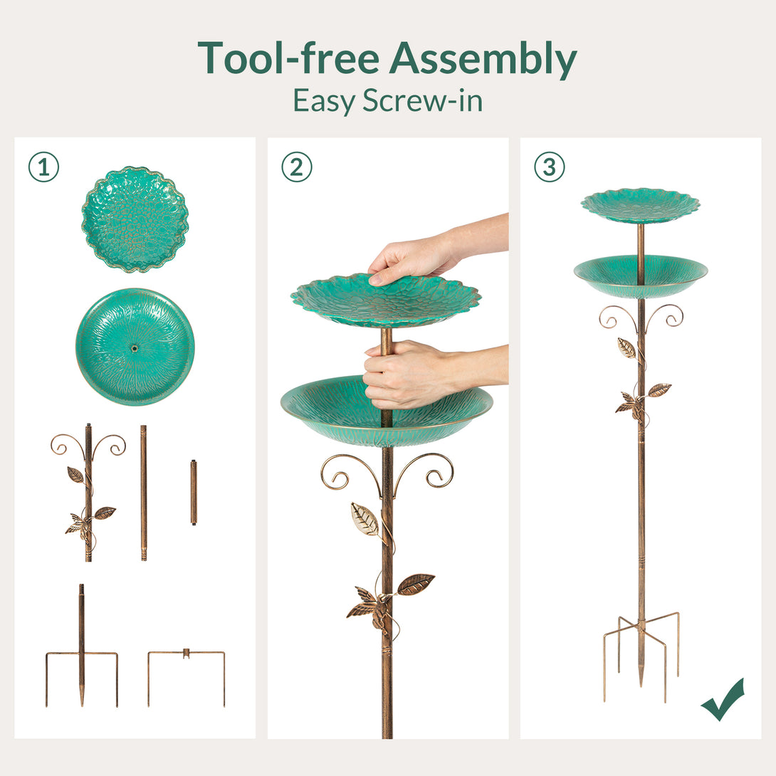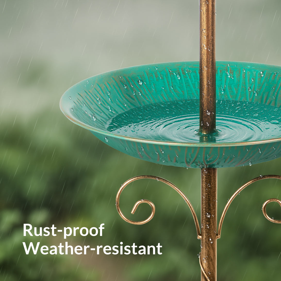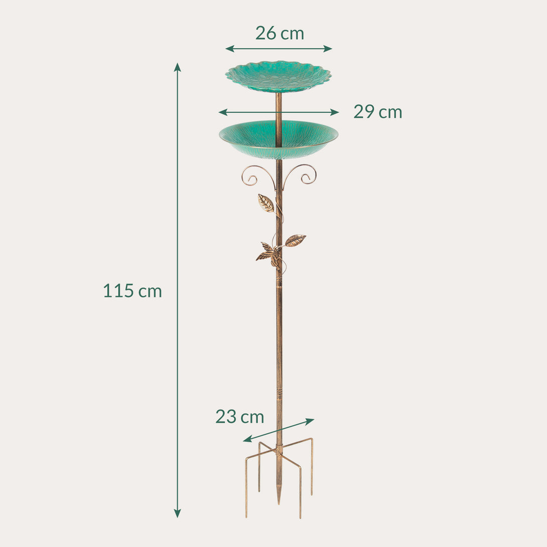 A: Sein 2-in-1-Design mit zwei übereinanderliegenden Schalen dient sowohl als erfrischendes Bad als auch als Futterspender, bietet Wildvögeln gleichzeitig Wasser und Nahrung.