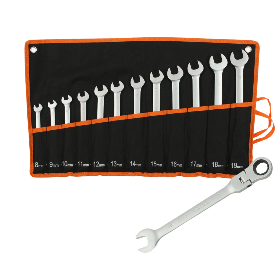 Komplette metrische Größen: Enthält Größen von 8 bis 19 mm, ideal für verschiedene Reparaturen.