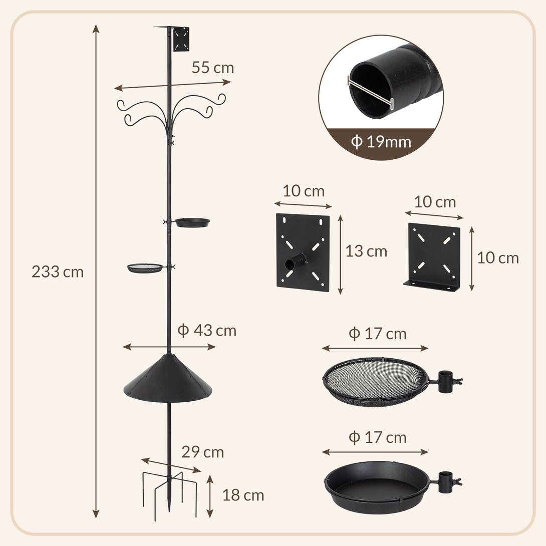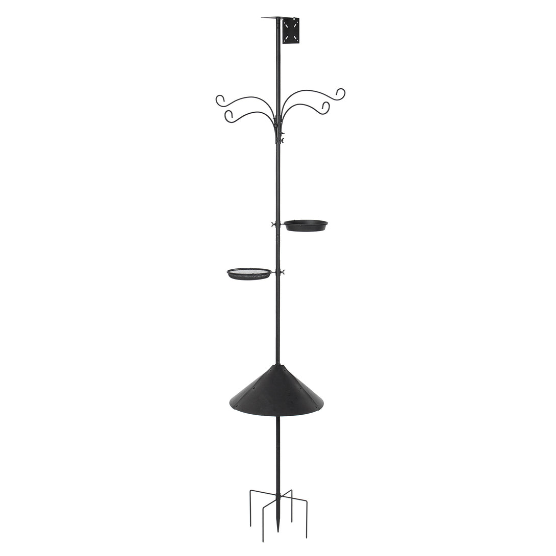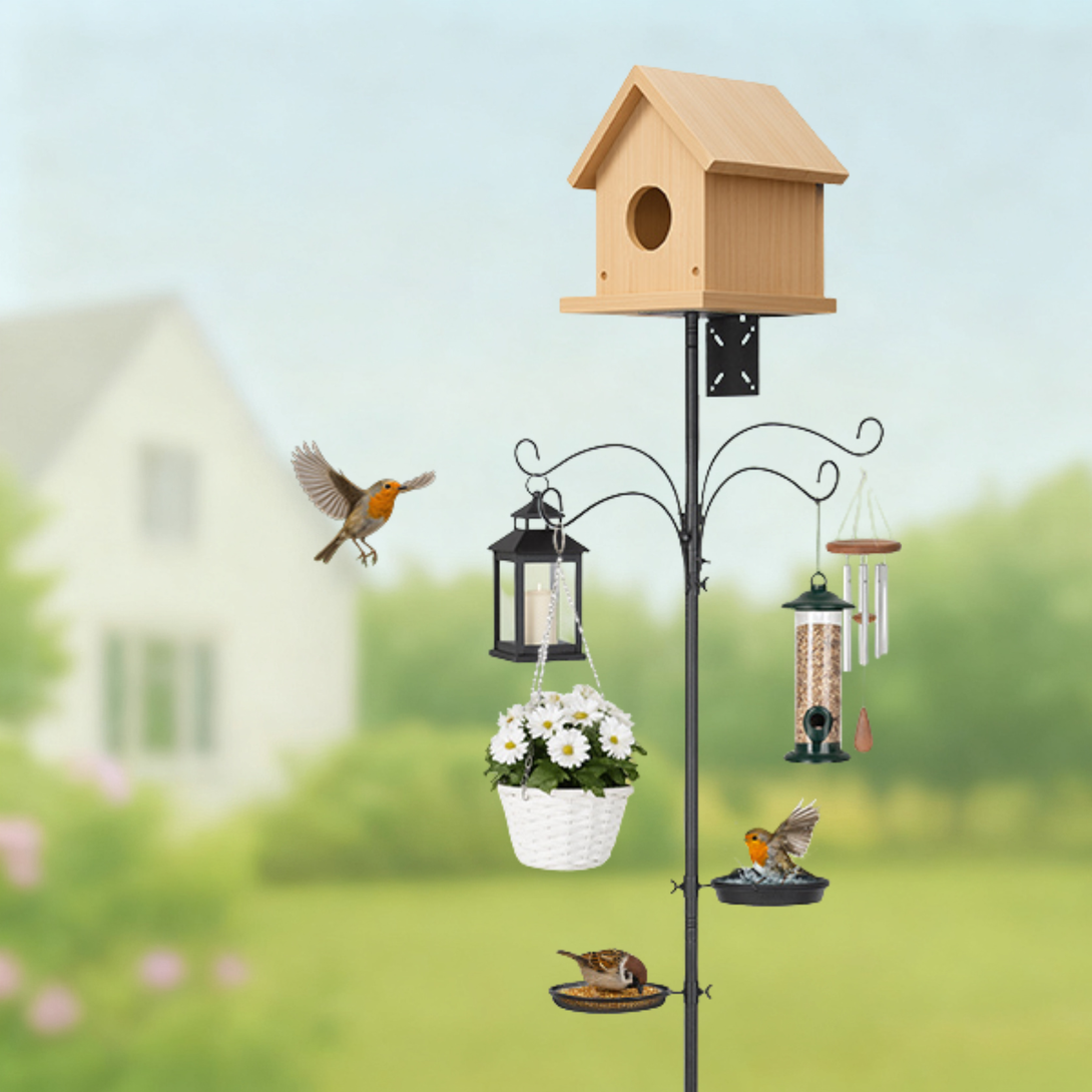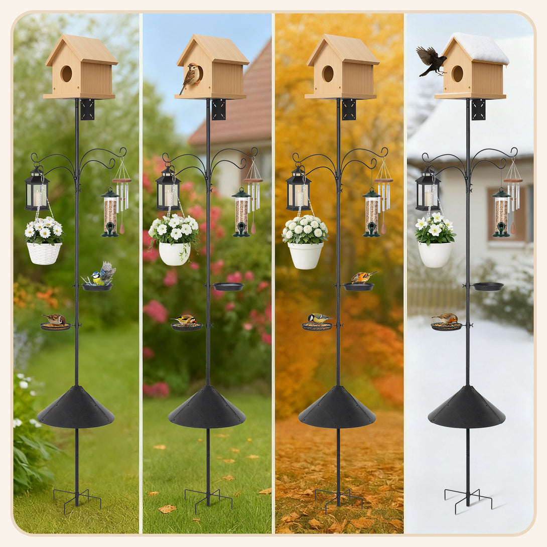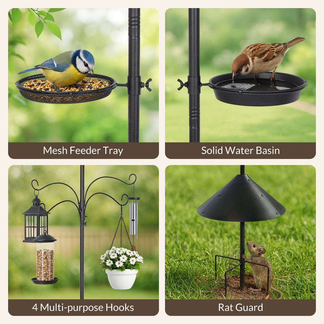 Adjustable Hook System: Equipped with 4 sturdy hooks, 2 trays for seeds and water, plus rodent guard; height adjustable with wing nuts.