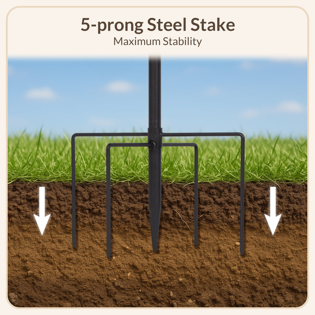 Stable 5-Tooth Base: Reinforced steel foot with five points that anchors firmly in the ground, preventing tipping even in wind or rain.