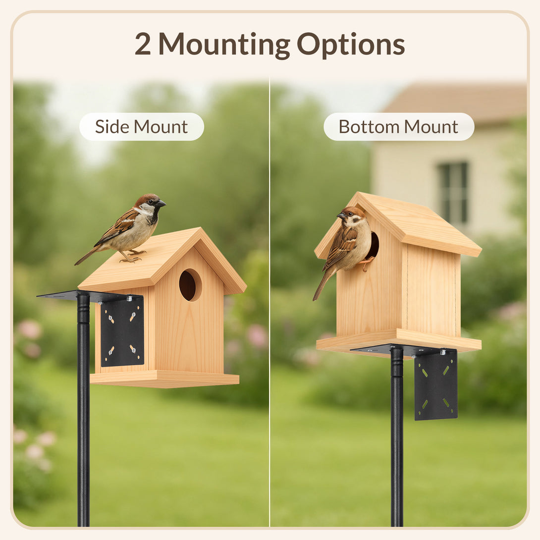 Double Mounting Plates: Two iron plates allow installation of a wooden birdhouse or other accessories such as weather stations or feeders.