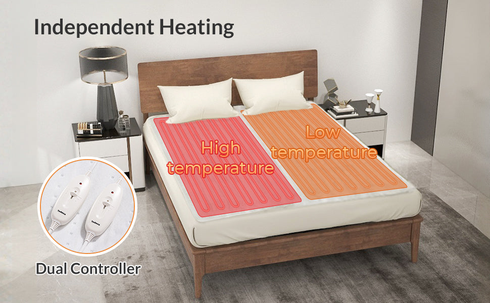 A: Este sobrecolchón calefactable tiene dos controles distintos, permitiendo que cada lado de la cama ajuste su temperatura de manera independiente para un confort personalizado.