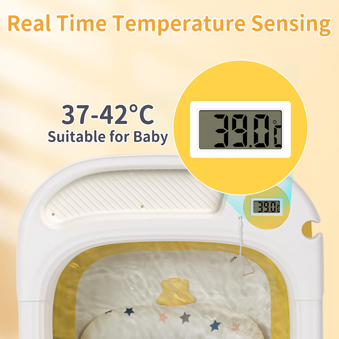 Termómetro visible: El sensor de temperatura del agua integrado ayuda a los padres a ajustar la temperatura del agua para evitar quemaduras o resfriados.