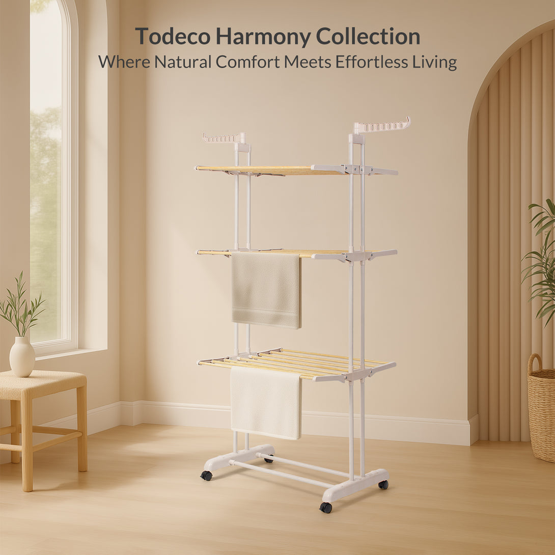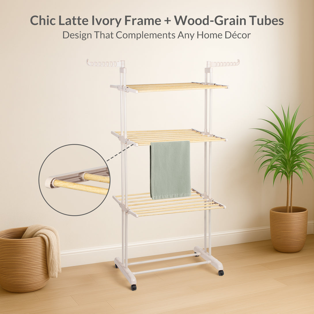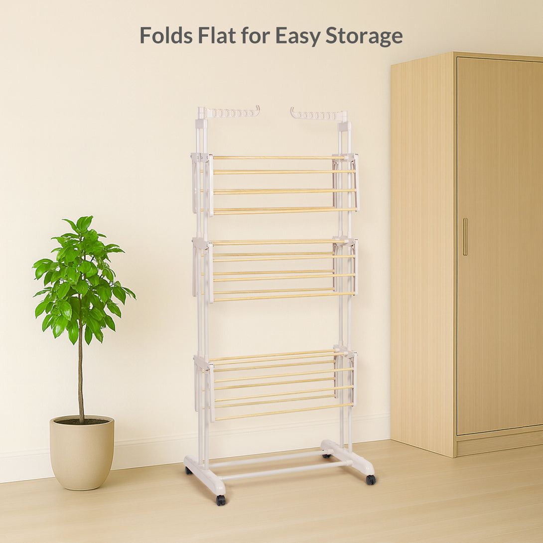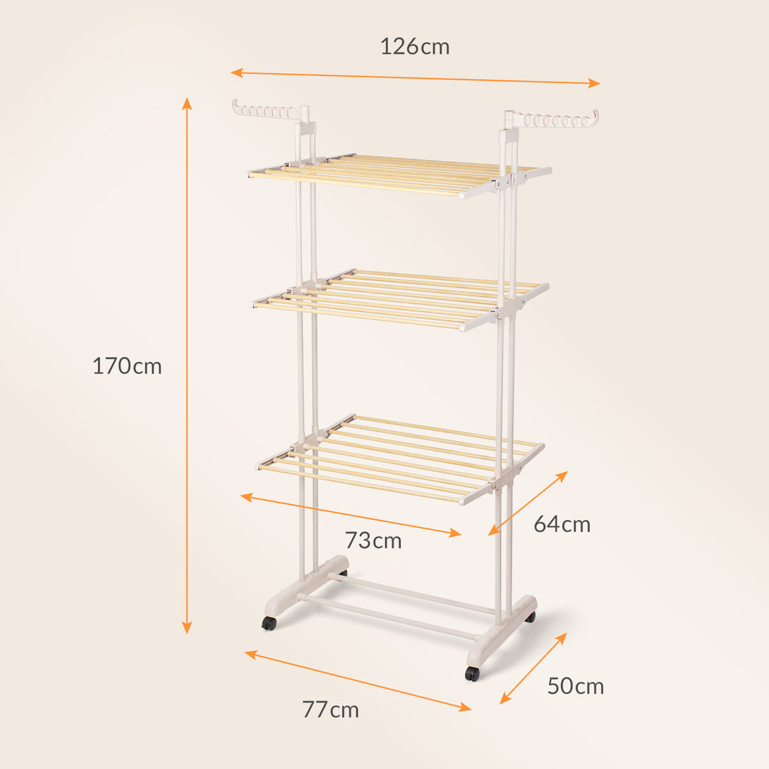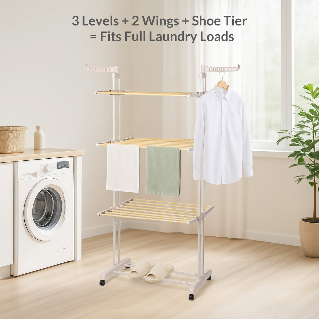 Gran capacidad de secado: Tres niveles, dos alas giratorias para ropa larga, nivel inferior para calzado.