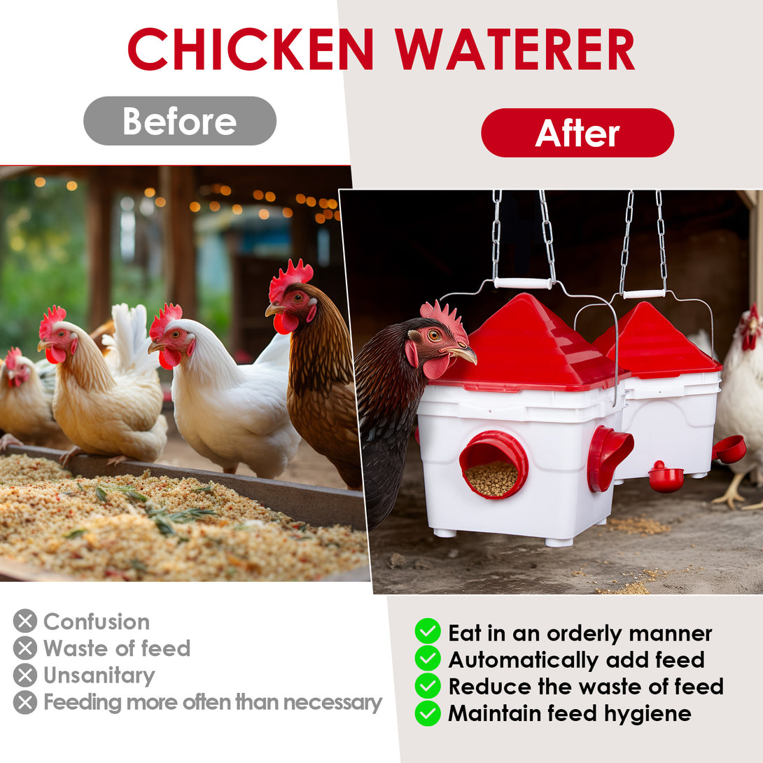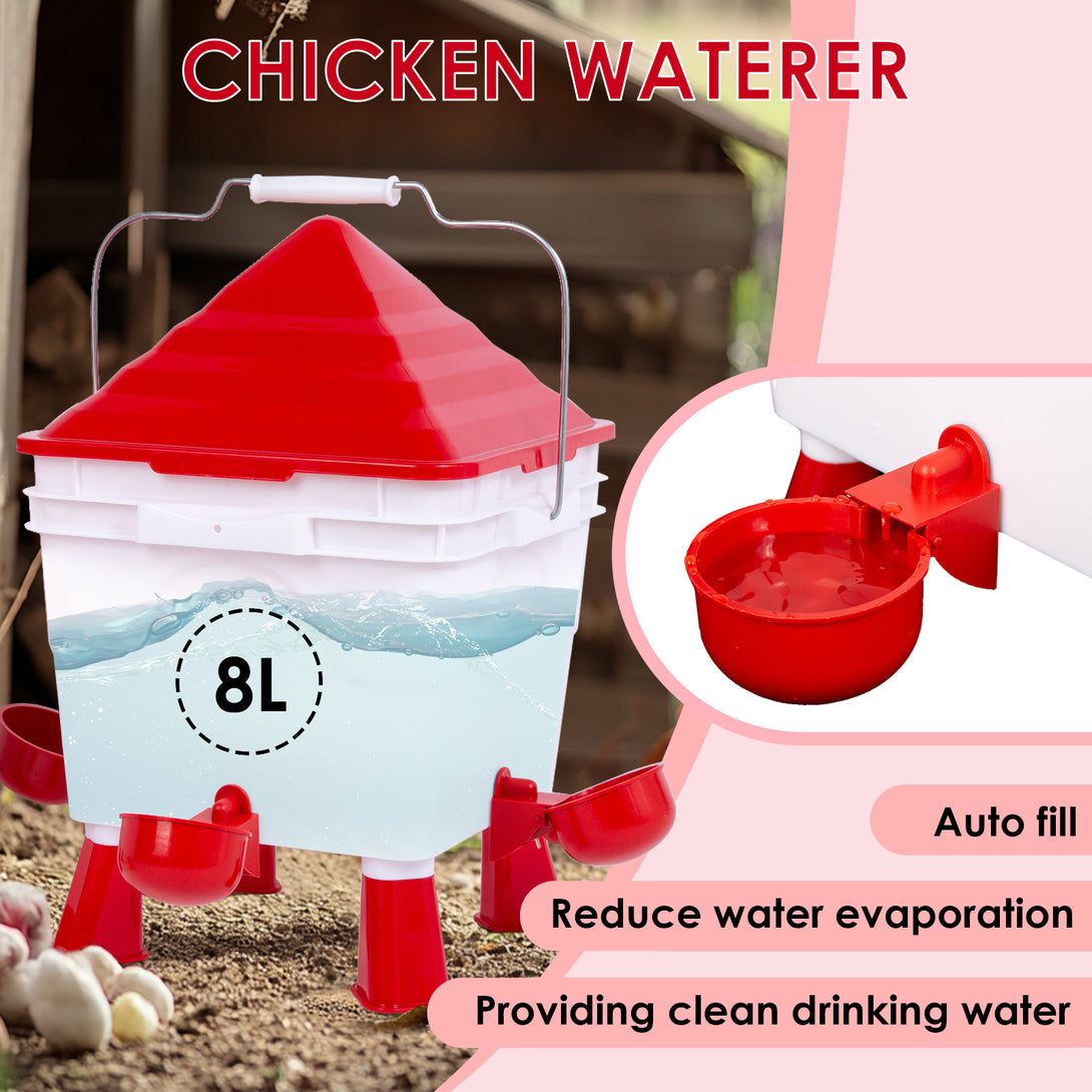 Sistema de llenado automático de agua: Ideal para propietarios de gallinas ocupados, puede contener hasta 8 kg de agua para un suministro constante de agua fresca.