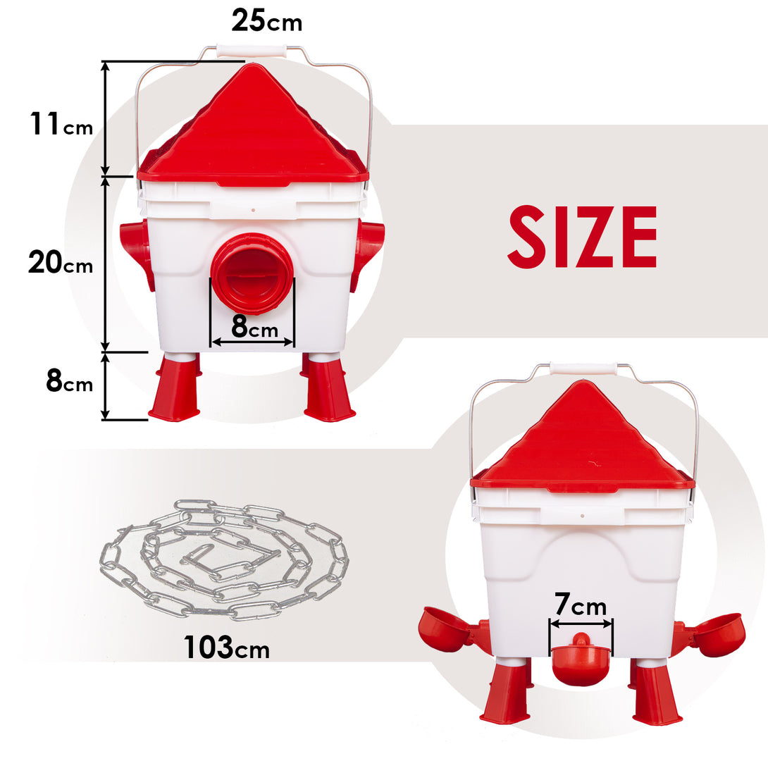 Comedero para gallinas sin desperdicio e impermeable: La tapa mantiene la comida limpia, el pico evita los derrames, puede contener hasta 6 kg de comida.