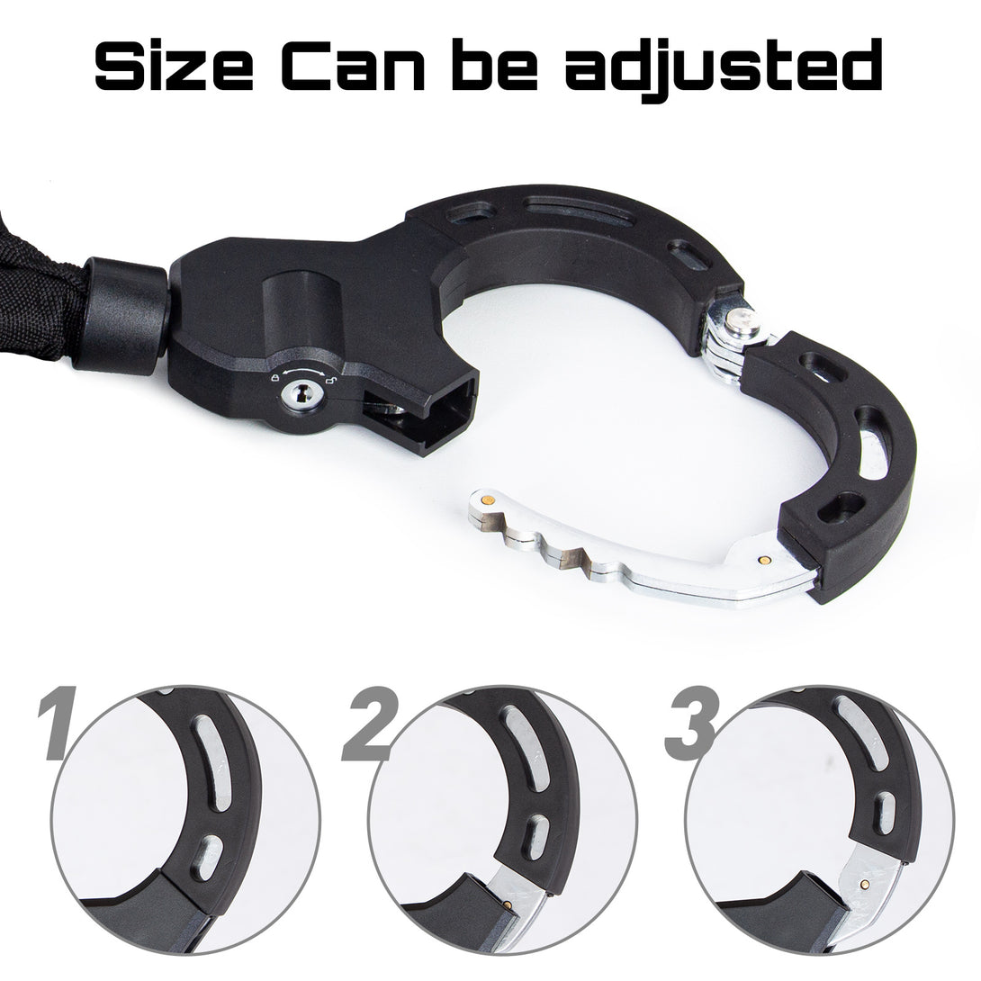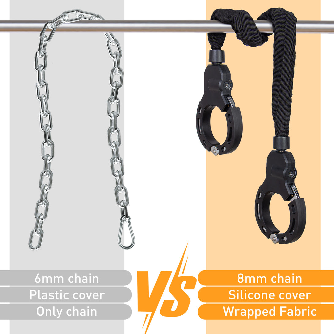 Durabilidad superior: Diámetro de la cadena de 8 mm, cubierta de silicona para el candado, cadena envuelta en tela para evitar arañazos.
