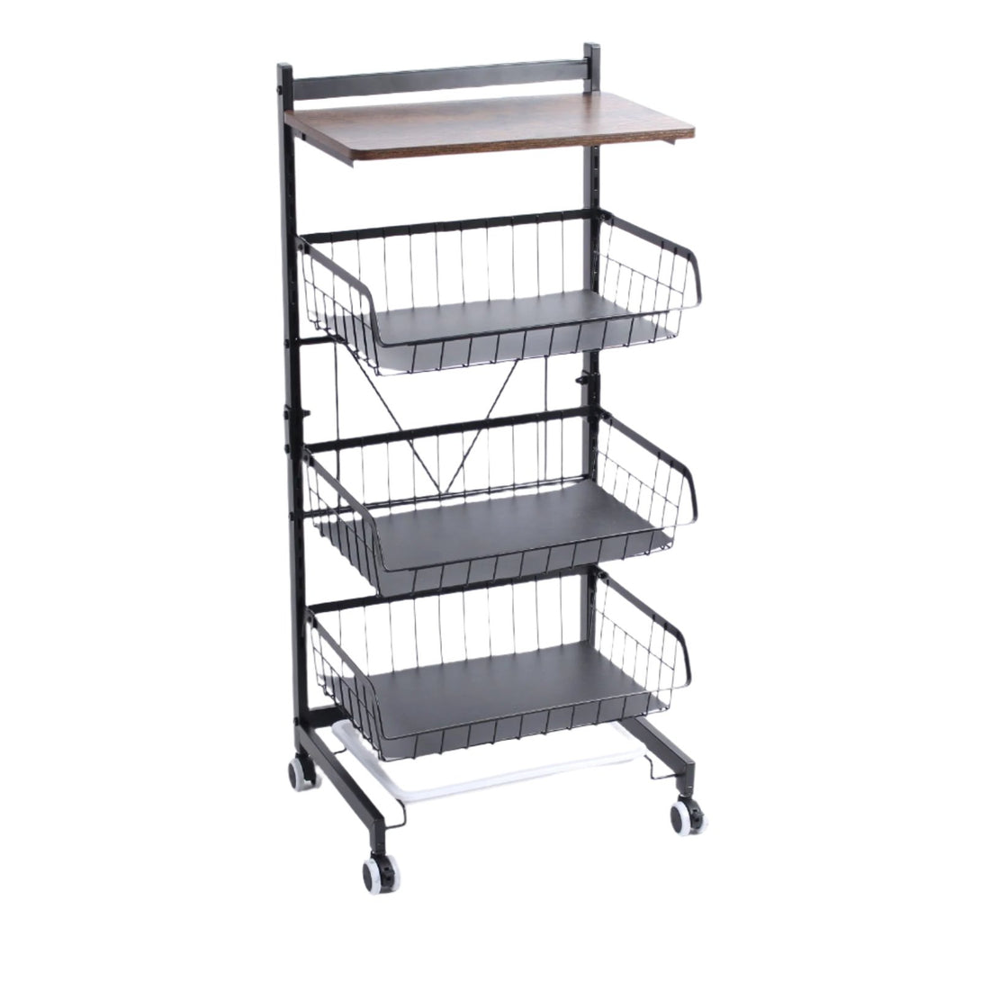 Carro de Almacenamiento de 4 Niveles (Tablero, Negro)