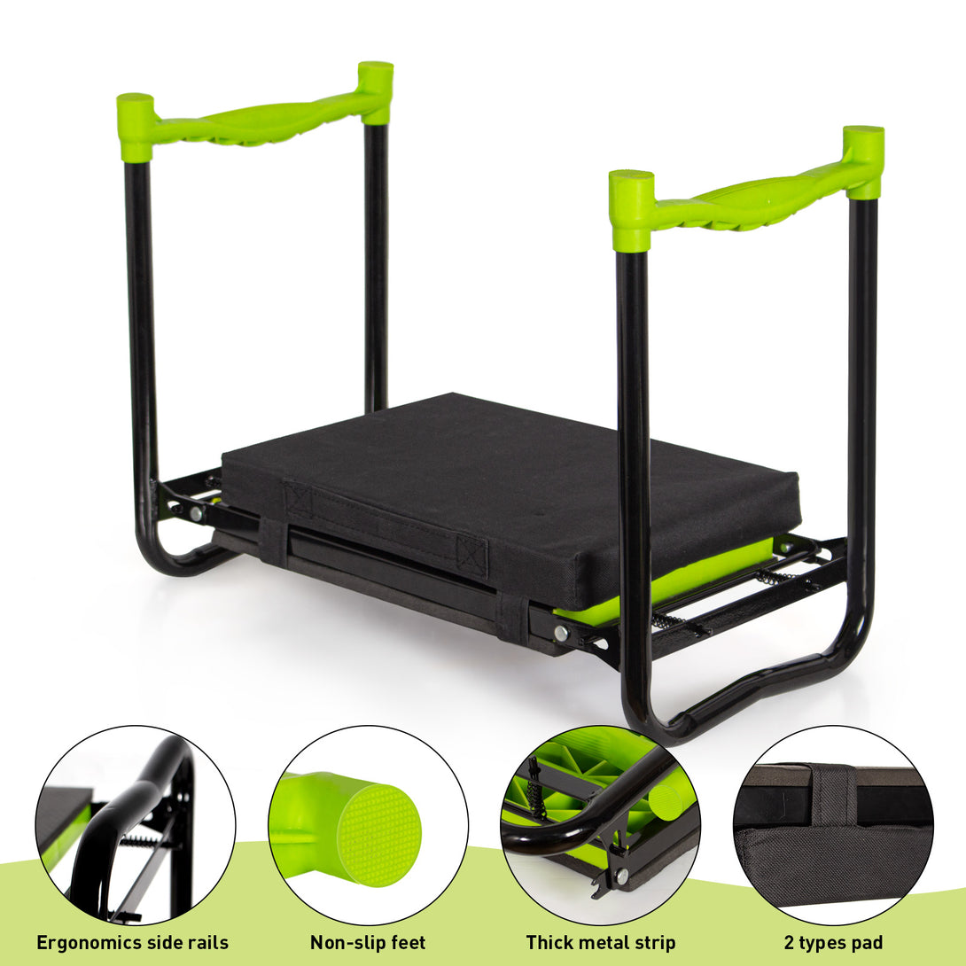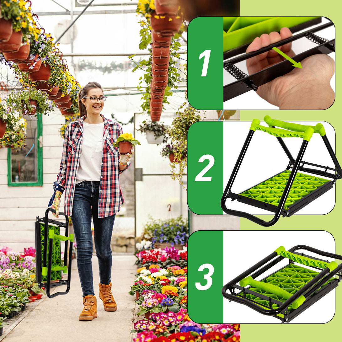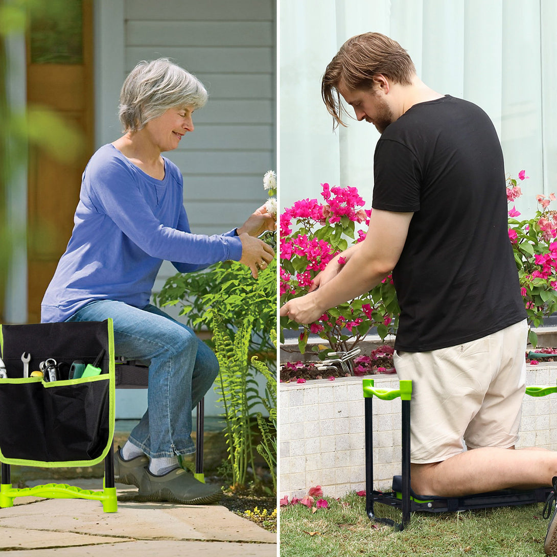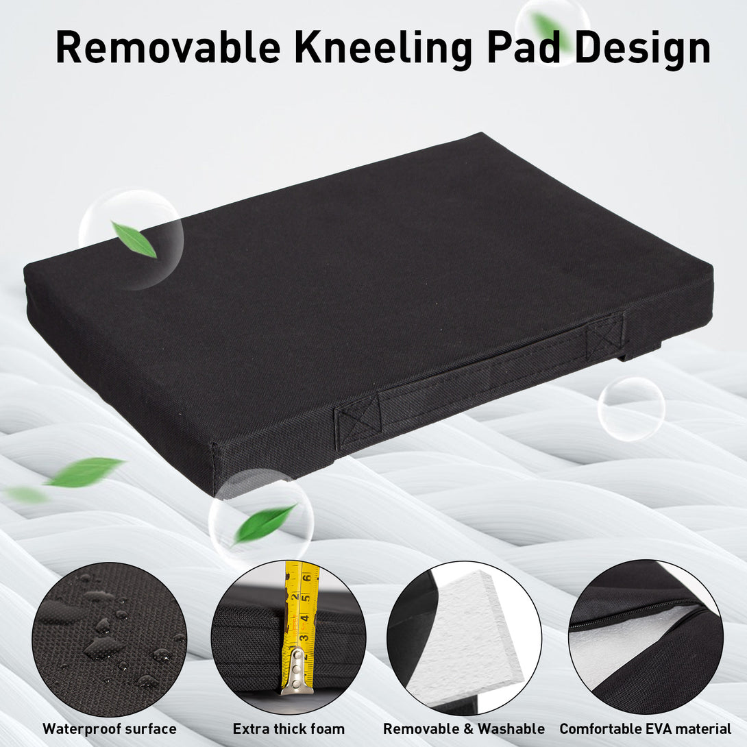 Confort superior: Asiento acolchado removible de EVA, perfecto para largas sesiones de jardinería.