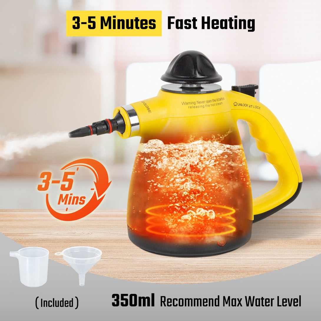 A : Le nettoyeur vapeur dispose d'un réservoir d'eau de 450 ml avec une capacité de remplissage maximale recommandée de 350 ml.