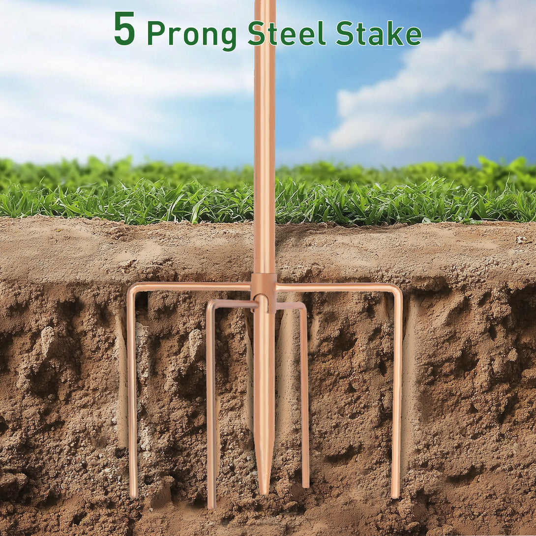 Facile à installer: Pas d'outils supplémentaires nécessaires, simplement serrer les composants ; le piquet métallique au fond est facile à insérer.