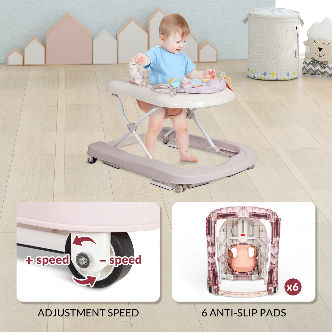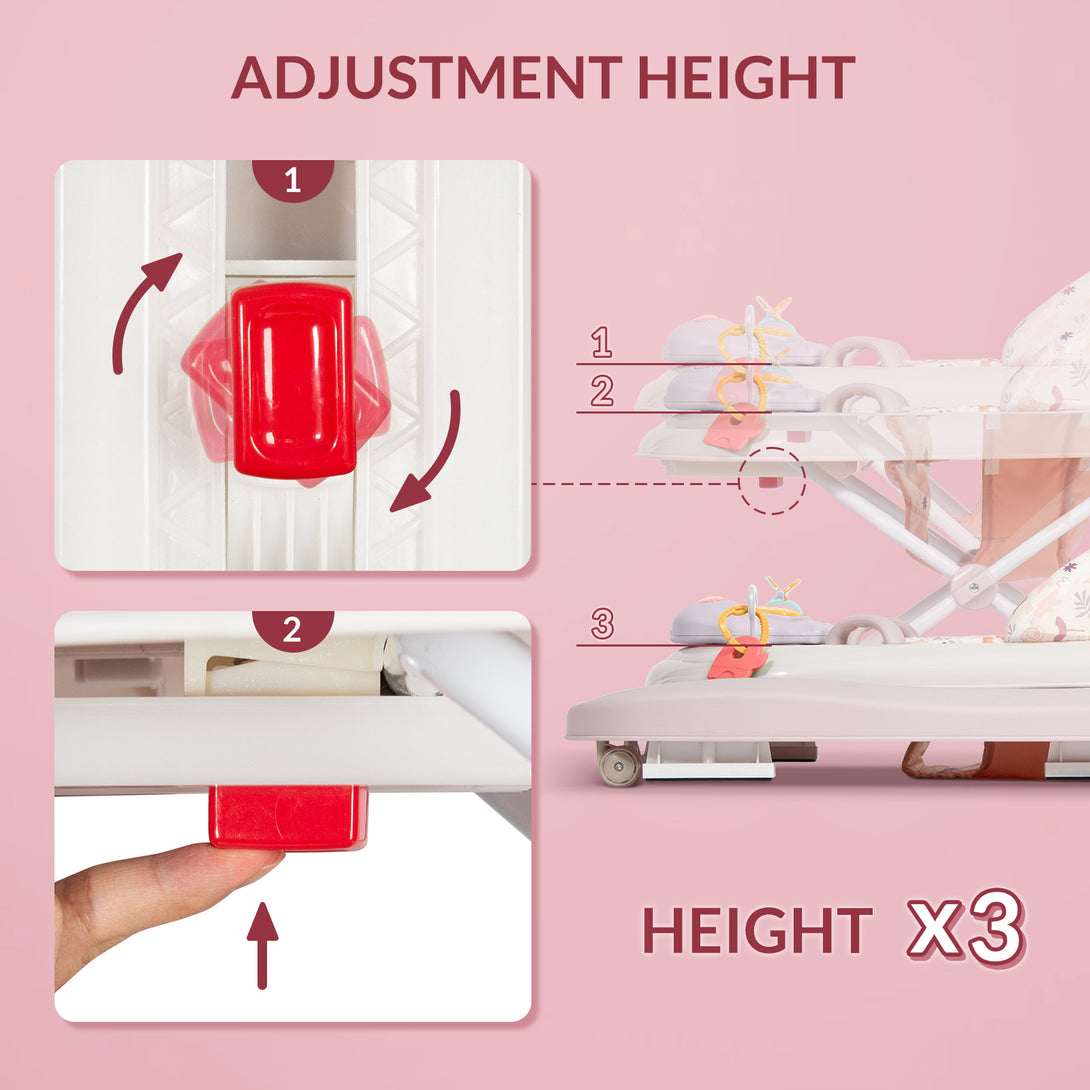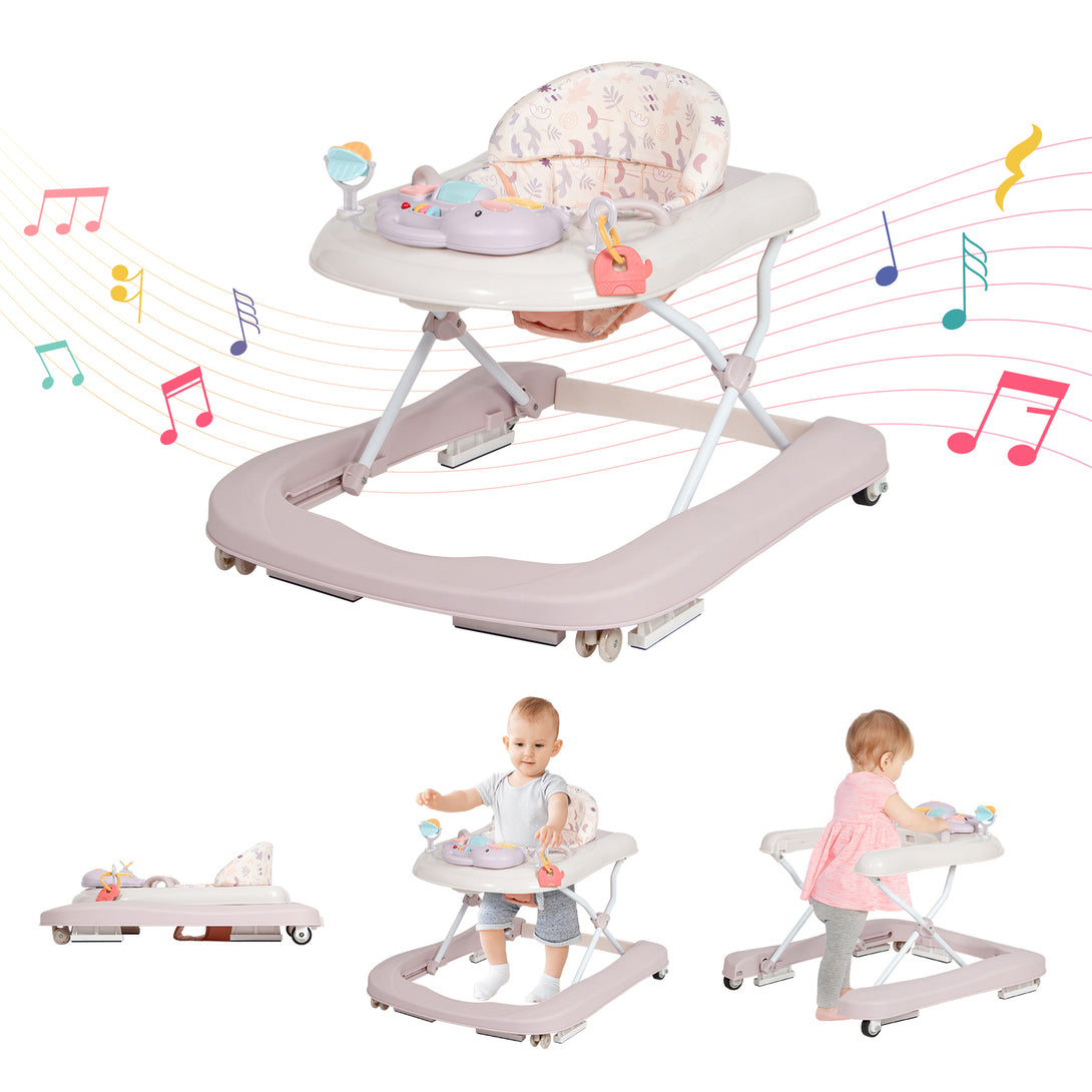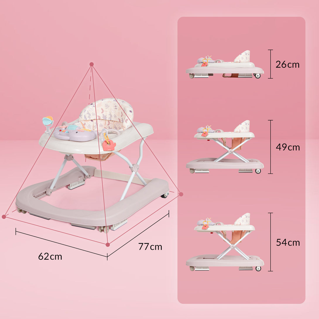 Design 3-em-1: Três modos: caminhada, empurrar e alimentação. Assento e caixa de música removíveis para troca fácil. Indicado para bebês de 6 a 18 meses.