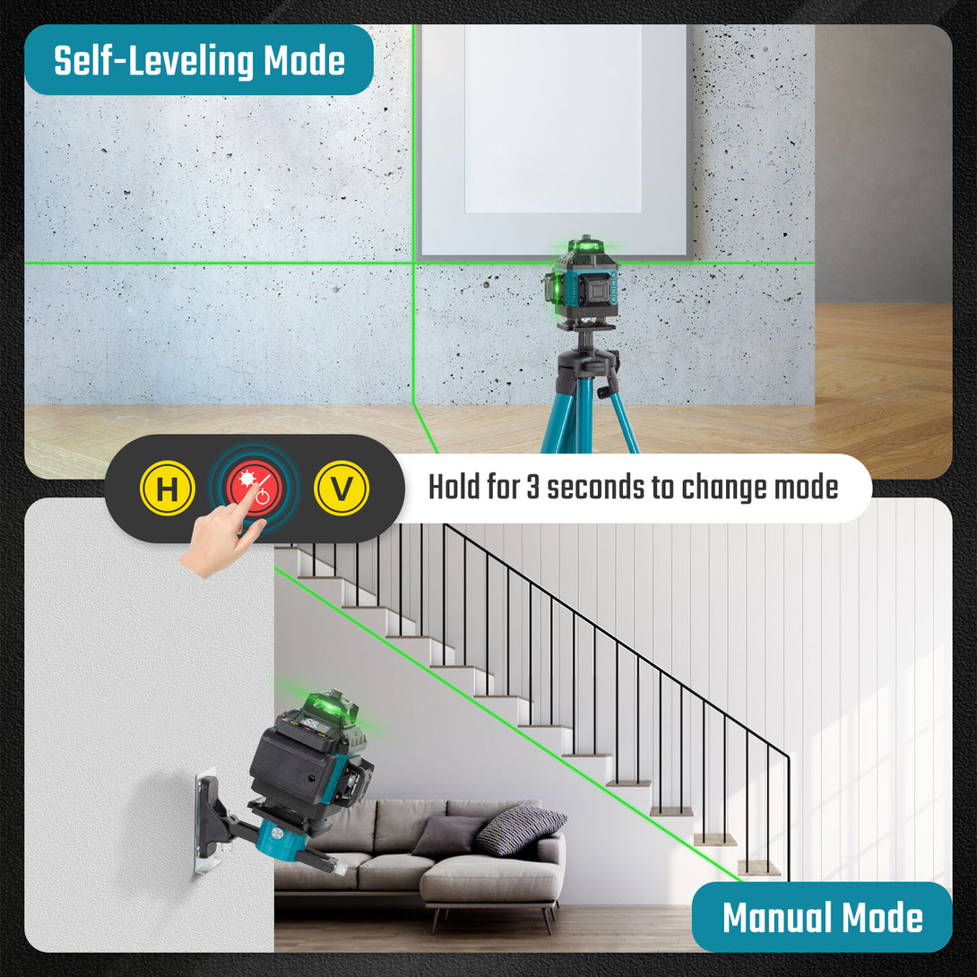 Modos de ajuste variados: Auto-nivelamento até 3° de inclinação; modo manual para linhas em ângulos personalizados.