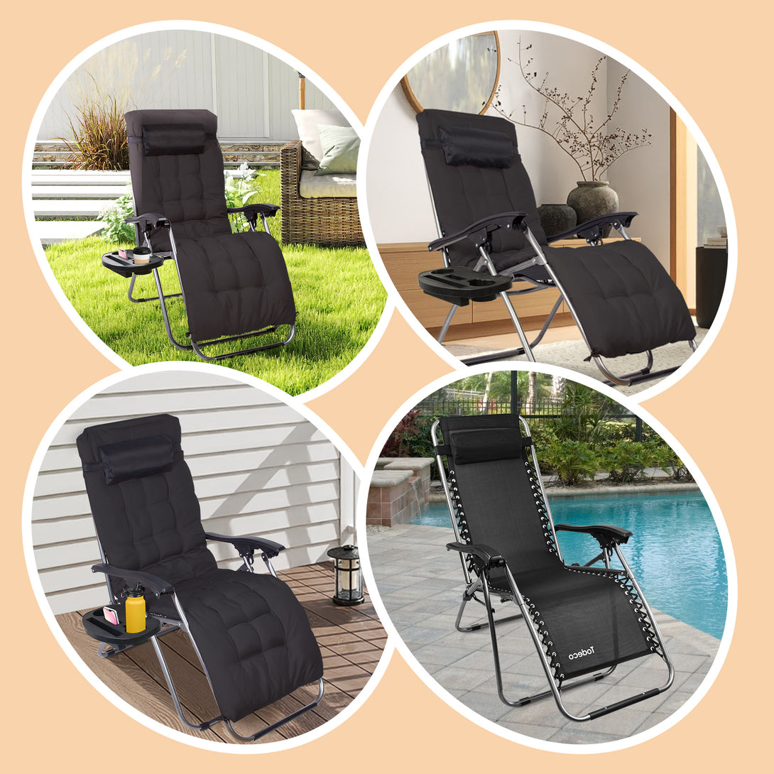 R: Esta espreguiçadeira 2 em 1 oferece assento respirável para o verão e almofada aconchegante para o inverno.