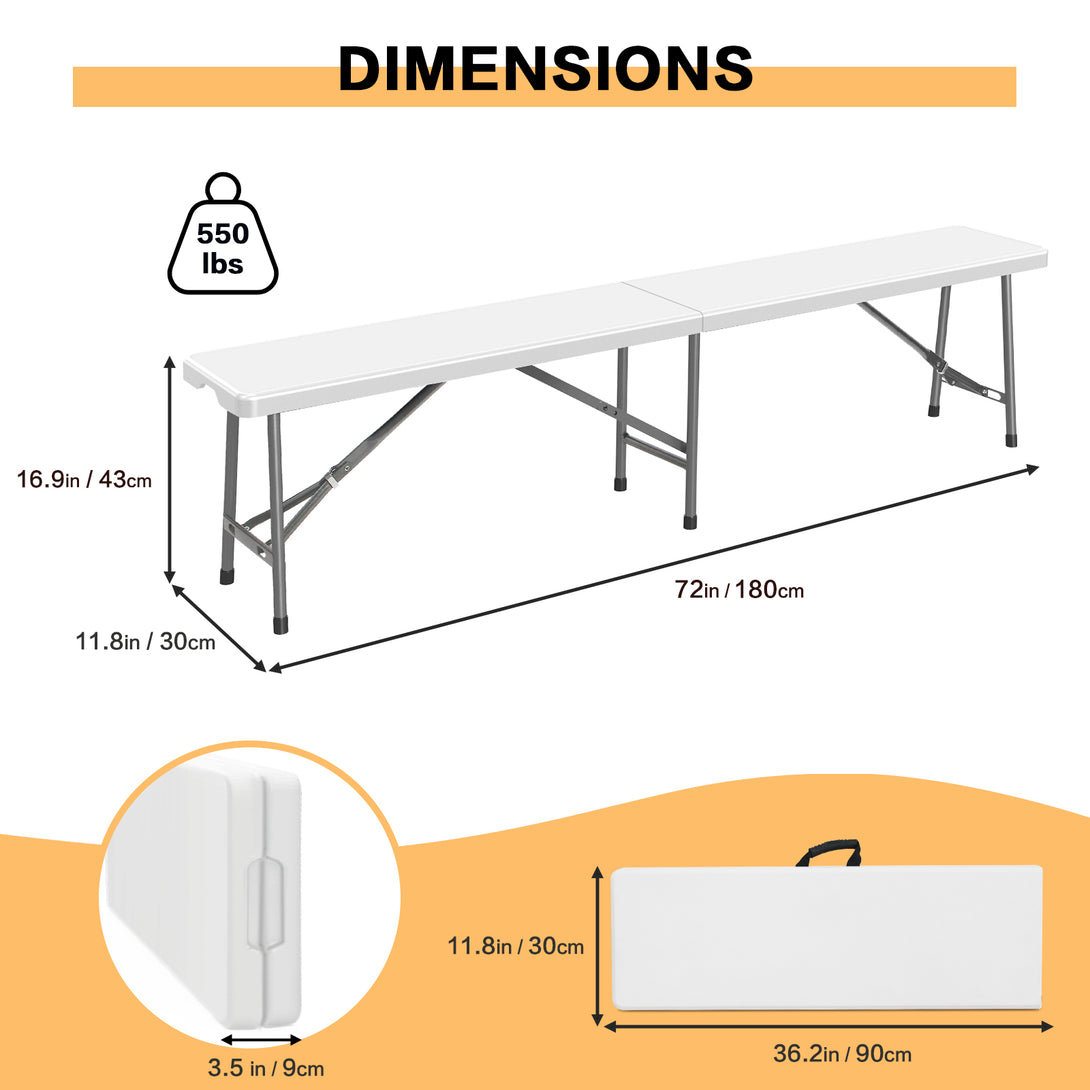 Banco Dobrável (183 x 30 x 43cm, Branco)